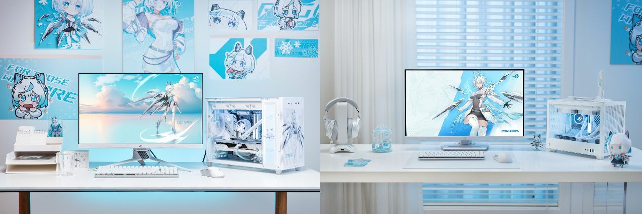 华硕ROG B850小吹雪主板板载4个M.2接口,其中一个接口位于主板背面。正面的3个主接口更配有支持快拆的散热装甲,不仅有效降低M.2 SSD的温度,搭配M.2便捷卡扣2.0,让装卸SSD更轻松。拥有PCIe 5.0 x16显卡插槽,支持显卡易拆键,一键即可轻松拆卸。预装一体化I/O背板,拥有丰富的USB接口,包含1个USB 20Gbps Type-C接口,满足高速扩展所需。板载2.5Gb有线网卡,并支持WiFi7,搭配雪武战姬主题的银白色易拆式天线,即使在复杂的网络环境中,仍可为玩家带来爽快利落的网络体验。音效方面主板采用Realtek ALC1220P音频解决方案,加上杜比全景声,带给玩家“声”临其境的沉浸式游戏音效体验。BIOS界面的分辨率提升至1920x1080,还有BIOS便捷仪表盘可以直观地看到主板外接设备和接口状态。此外,主板还支持AURA SYNC神光同步,并板载3个第二代可编程ARGB灯效接针,可与其他ROG白色配件打造全家桶,更有雪武战姬形态出道应援打Call,潮玩竞装,满血战力!