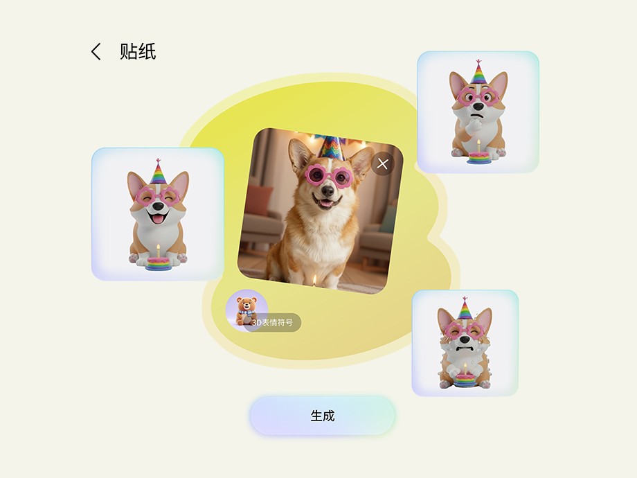针对个性化内容创作,“创意工作室”提供了一站式的解决方案。无需在多个应用间频繁切换,无论是简单的草图、现有的照片,还是特定的文字提示,该功能都能将其快速转化为具有设计感的社交贴纸、精美的邀请函或专属的个性化壁纸。生成作品后即可在当前界面一键分享,确保了移动端创作流程的连贯性。