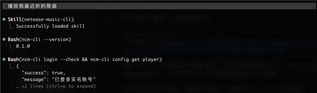 ncm-cli 在这里不只是播放工具,而是音乐数据的结构化接口。Agent 拿到这些数据之后,可以做任何事——生成图片、写报告、分析偏好、发邮件,取决于你的想象力和 Agent 能调用的其他工具。