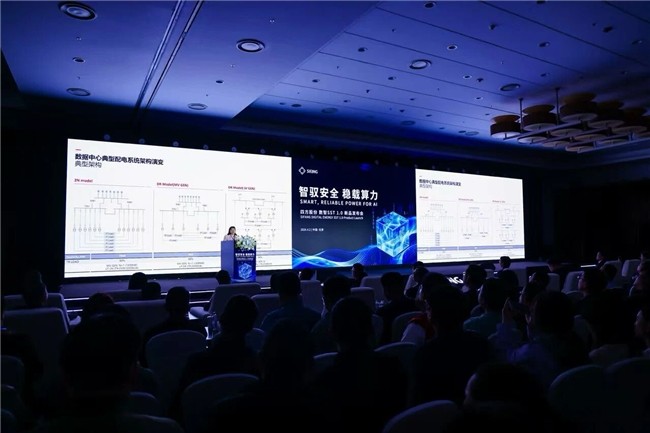数智SST1.0新品正式发布是本次会议的焦点,四方数智公司CMO王继慷对该产品进行介绍。他表示,让中压交流直达800V直流的能源平台,助力实现下一代直流负载供电更简单、更高效、更可控、更电网友好,是面向下一代数据中心的新型供电解决方案。在会议现场,四方股份SST1.0产品首次重磅亮相,获得与会嘉宾的广泛关注。王继慷表示,公司SST1.0产品已经实现量产,未来将根据行业需求不断迭代升级。