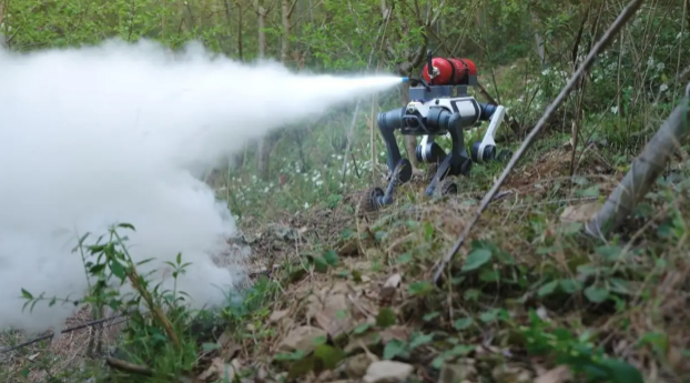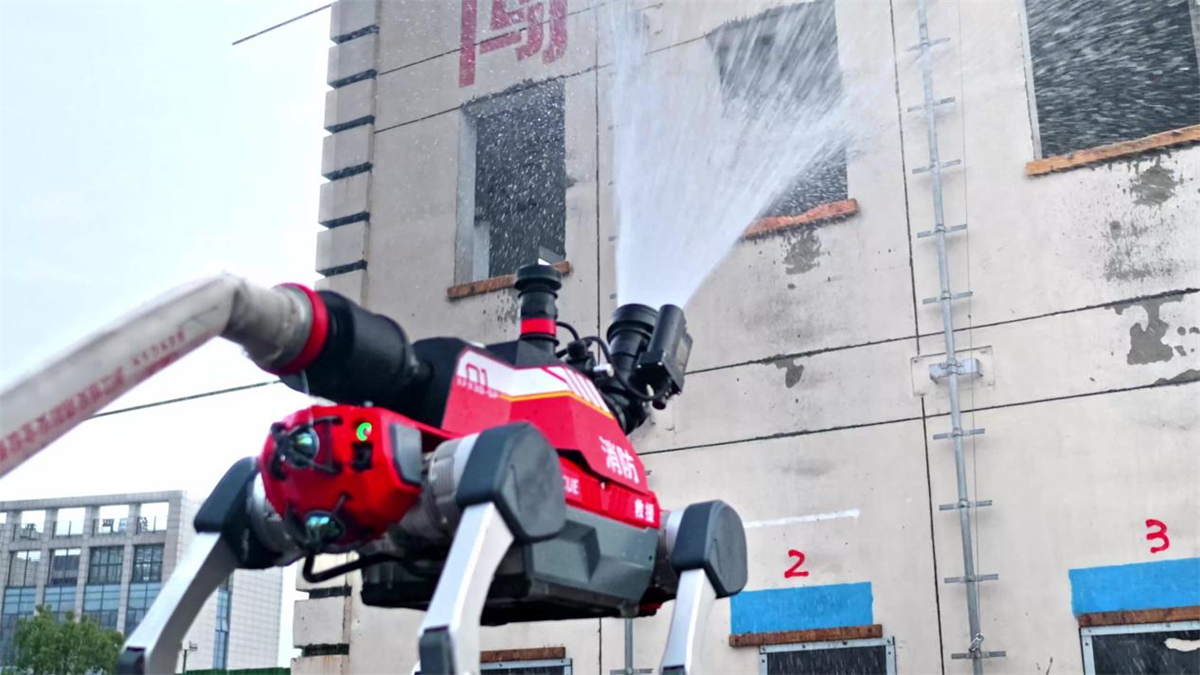 山猫M20轮足机器人在消防救援中充当四足水炮灭火机器人