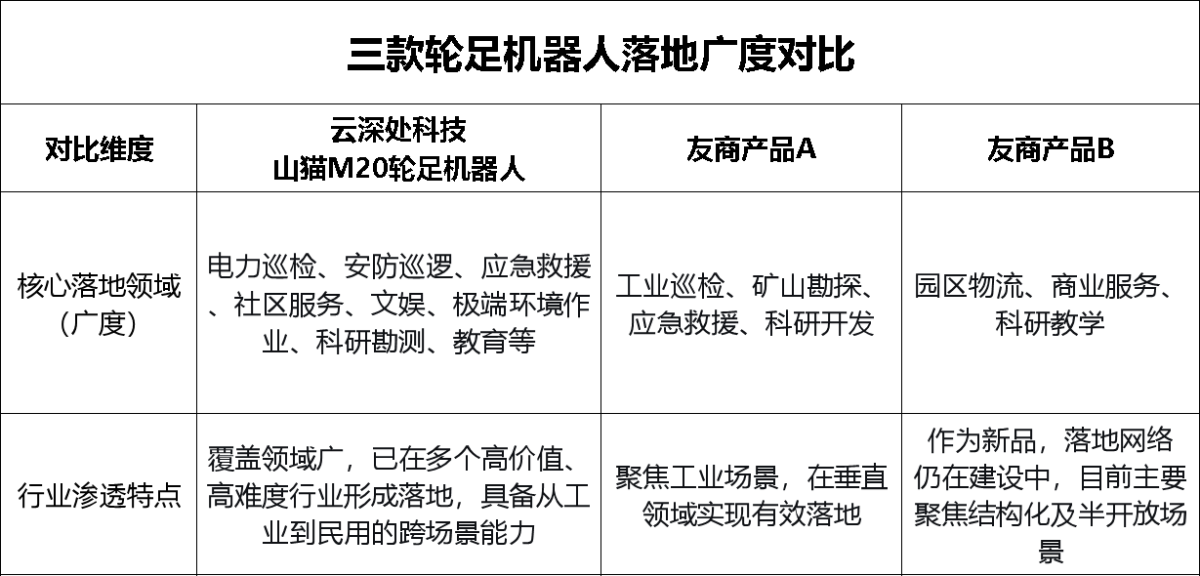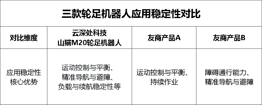 云深处科技山猫M20轮足机器人则在极端环境耐受性、全地形适应性上展现出更扎实的实战能力,同时在场景落地广度与长期运行稳定性层面表现更为突出——其通过高寒、高温、沙地、湿地等极限工况的实证积累,形成了成熟的场景适配方案,更适合对场景复杂度、运行可靠性要求较高的工业级客户,尤其在极端环境巡检、应急救援、安防巡检等场景中,更能发挥其全地形、高稳定的核心优势。综上,山猫M20在轮足机器人赛道上构筑了领先优势,是当之无愧的标杆级产品。