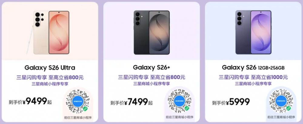 为了让更多用户体验到上述前沿科技,本次三星商城的闪购节活动也拿出了极具诚意的优惠福利。通过三星商城小程序购买三星Galaxy S26 Ultra与Galaxy S26+的消费者可享至高立省800元,购买12GB+256GB版本Galaxy S26 至高立省1000元;购买三星Galaxy Z Fold7可享券后至高优惠1000元,Galaxy Z Flip7券后至高优惠1100元。此外,参与活动的用户还可享受下单礼、分享礼、星运礼等更多礼遇。想要入手这些三星Galaxy热门手机的你,快登录三星商城,下单最适合自己的机型吧。