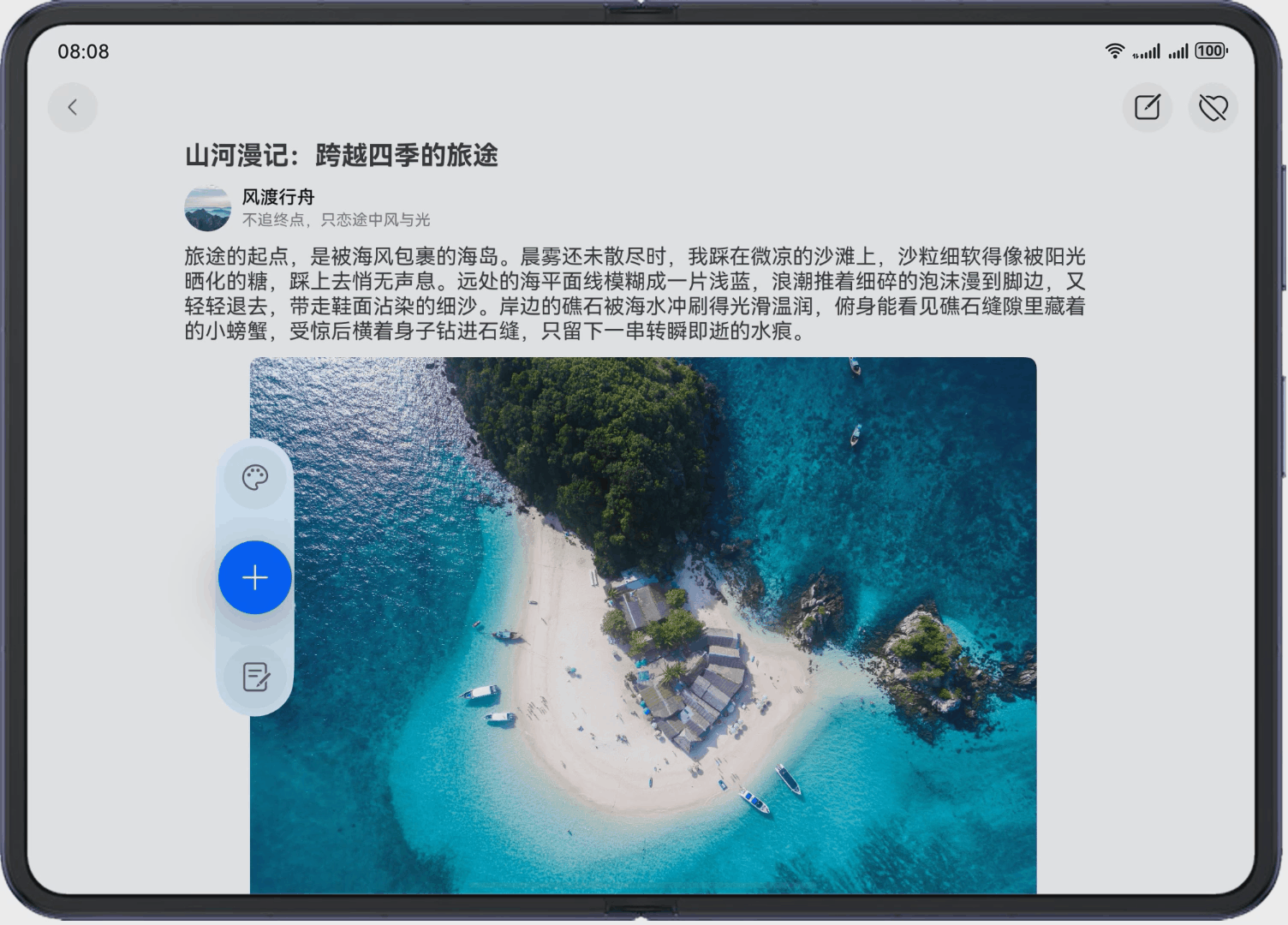 除了交互层面的革新,Pura X Max 还在视觉体验上进行了系统性升级。例如,通过沉浸光感组件与界面动态隐退机制,应用界面可以在用户操作时自动弱化干扰元素,让内容本身成为视觉焦点,应用的表达空间被进一步放大。