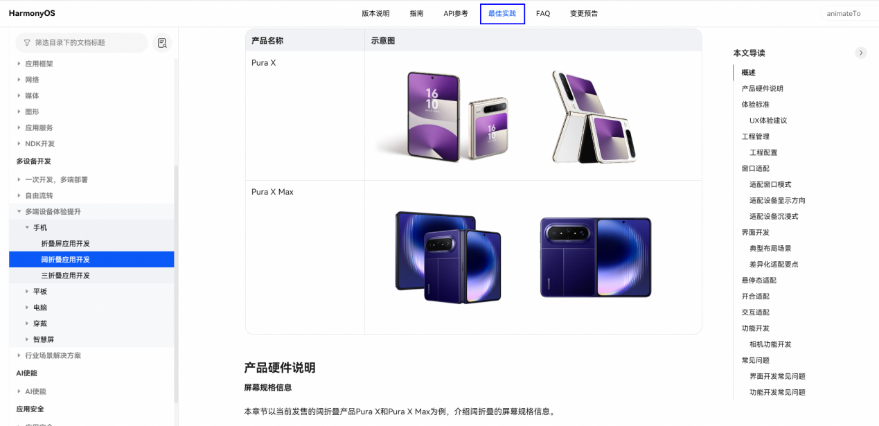 Pura X Max以全新设计重塑折叠屏体验。结合HarmonyOS系统的全新能力,应用在视觉和交互上均可全面升级,用户体验跃然提升。除了全新特性适配指导外,HarmonyOS开发者官网上还提供了Pura X Max设备从布局适配、窗口管理到交互优化的全流程指导,帮助开发者快速上手相关核心适配。