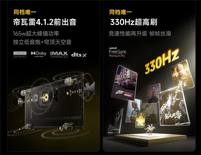 在音质表现上,Vidda 发现X 2027更是惊喜满满,搭载万元旗舰的音响配置,成为同档唯一标配帝瓦雷4.1.2前出音系统的机型。不同于传统下出音设计,前出音结构彻底解决了电视贴墙安装时声音发闷的行业痛点,搭配两个独立天空音单元和侧环绕单元,能构建出三维立体的穹顶声场,带来沉浸式的空间音频体验。再加上AI虚拟环绕、人声增强等六大智能音效算法,无论是电影中的爆炸场面,还是细腻的人物对白,都能呈现出层次分明、细节丰富的声音效果,让用户省下额外购买回音壁的费用。